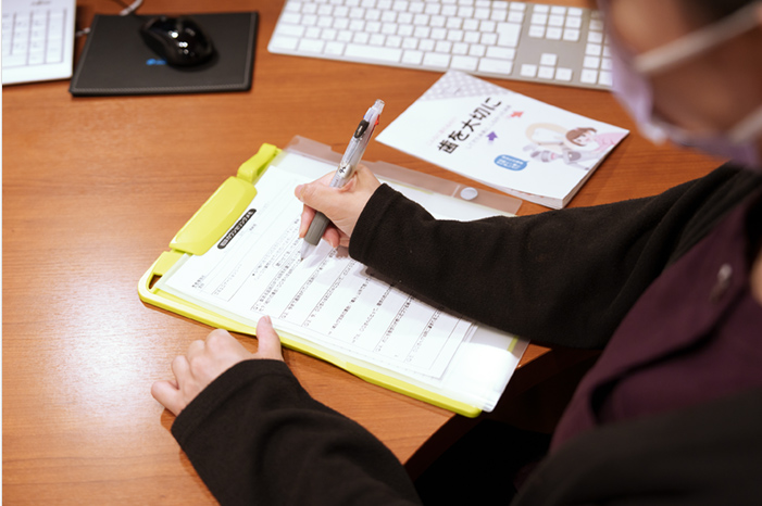 問診票の記入案内や、治療内容に関する簡単な説明など、患者さまに寄り添った対応を学びます。