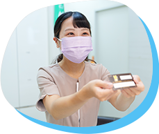 患者さんの保険証確認、問診票の記入案内、診察券の発行など、来院時の対応を習得します。